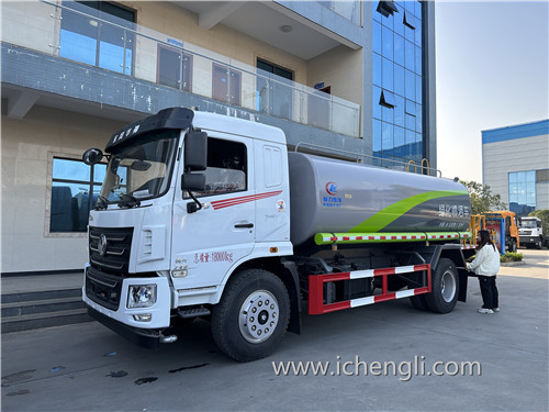 根據客戶要求:罐體容積約15立方。新款工藝流水線標準化生產灑水車,大氣,漂亮!專用功能為:前沖后灑,帶側噴,罐體后帶工作平臺,平臺上安裝綠化灑水高炮,灑水炮可全方位旋轉,并有多種雨狀可調節(大雨、中雨、毛毛雨、霧狀),泵可自吸自排,帶自流閥,帶消防接頭,帶過濾裝置。車輛交付客戶特別滿意!感謝信任!