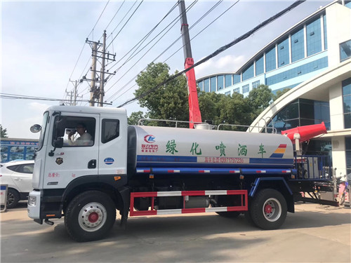 根據客戶要求:罐體容積約12立方;專用功能為:前沖后灑,帶側噴,帶高位花灑,罐體后帶工作平臺,平臺上安裝綠化灑水高炮,灑水炮可全方位旋轉,并有多種雨狀可調節(大雨、中雨、毛毛雨、霧狀),泵可自吸自排,帶自流閥,帶消防接頭,帶過濾裝置。后平臺加大安裝30型柴油發電機組全自動霧炮噴霧機組,遙控操作,工地拆遷,降塵,園林綠化,花卉植物噴藥皆可使用。