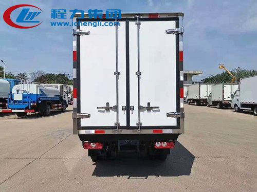 四、 廂體配置:我公司廂式冷藏車工藝采用專用模具壓制成型,保溫性能達到國家A級標準,保溫材料為無縫隙填充聚氨酯發泡,廂體內外采用高強度玻璃鋼板材質,樹脂膠無縫連接,后配全密封雙開門,不銹鋼門框包邊,不銹鋼合頁和鎖件,廂體內部加裝LED夜間照明燈。