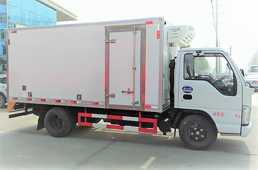 標準:冷藏車由專用汽車底盤的行走部分,與隔熱保溫廂體(一般由聚氨酯材料,玻璃鋼組成、彩鋼板、不銹鋼等),制冷機組,車廂內(nèi)溫度記錄儀等部件組成,對于特殊要求的車輛,如肉鉤車,可加裝肉鉤,攔貨槽,鋁合金導(dǎo)軌,通風(fēng)槽等選裝件。