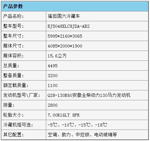 福田奧鈴(單排/排半)國六冷藏車制造工藝采用專用模具壓制成型,保溫性能達到國家A級標準,保溫材料為無縫隙填充聚氨酯發泡,廂體內外采用高強度玻璃鋼板材質,樹脂膠無縫連接,后配全密封雙開門,不銹鋼門框包邊,不銹鋼合頁和鎖件,廂體內部加裝LED夜間照明燈;可選裝廂體側門(單側門或雙開門)。上藍牌,C證可開,城市道路不限行!國六排放,全國上牌無憂!