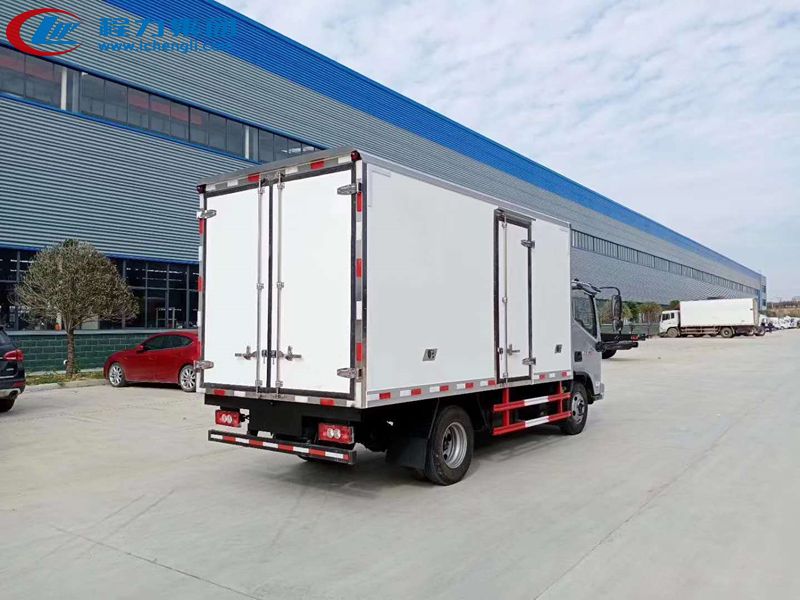 四、 廂體配置:我公司廂式冷藏車工藝采用專用模具壓制成型,保溫性能達到國家A級標準,保溫材料為無縫隙填充聚氨酯發泡,廂體內外采用高強度玻璃鋼板材質,樹脂膠無縫連接,后配全密封雙開門,不銹鋼門框包邊,不銹鋼合頁和鎖件,廂體內部加裝LED夜間照明燈。