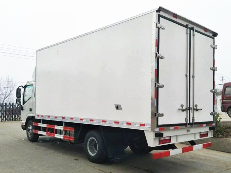 標準:冷藏車由專用汽車底盤的行走部分,與隔熱保溫廂體(一般由聚氨酯材料,玻璃鋼組成、彩鋼板、不銹鋼等),制冷機組,車廂內溫度記錄儀等部件組成,對于特殊要求的車輛,如肉鉤車,可加裝肉鉤,攔貨槽,鋁合金導軌,通風槽等選裝件。