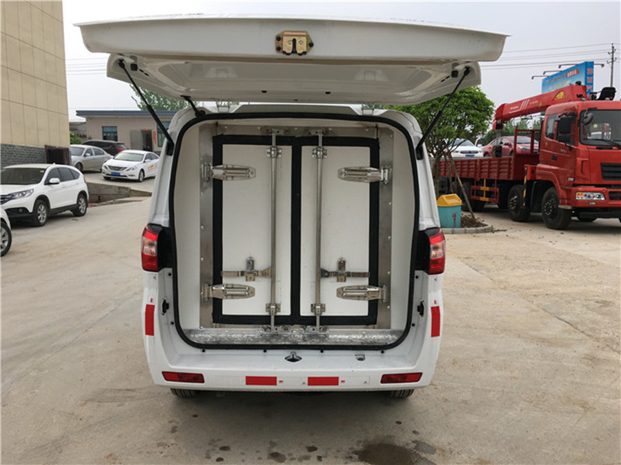 七 廂體配置:我公司面包式冷藏車工藝采用專用模具壓制成型,保溫性能達到國家A級標準,保溫材料為無縫隙填充聚氨酯發泡,廂體內外采用高強度玻璃鋼板材質,樹脂膠無縫連接,后配全密封雙開門,不銹鋼門框包邊,不銹鋼合頁和鎖件,廂體內部加裝LED夜間照明燈。