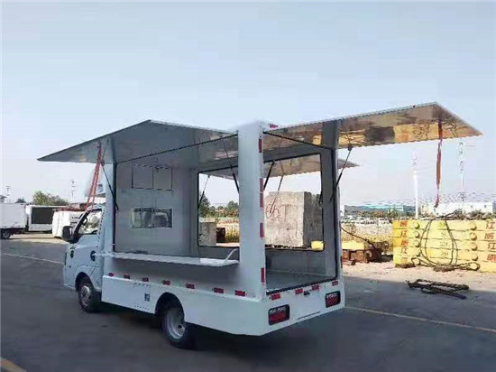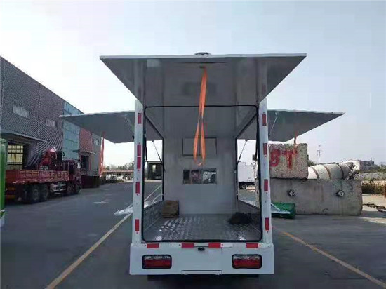 箱體尺寸3300*1630*1750【MM】,箱體采用內外彩鋼板制作,箱體兩面上翻帶吧臺,尾門整體上翻。