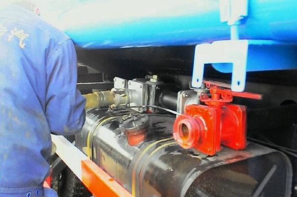 其次找到四通閥,通過手柄將閥門推至與地面垂直,打開進水口;再至駕駛室將變速箱掛入空檔,啟動發(fā)動機,松離合,將取力器開關(guān)向后拉,掛入檔位。、自吸式灑水泵開始工作,開始進行吸水作業(yè)。