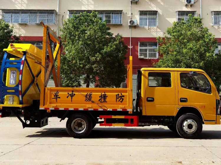 東風多利卡D6雙排座80K防撞緩沖車功能特點:安全預警系統能有效避免防撞緩沖車被后方車身撞擊。如果有車輛疲勞駕駛、沒看到施工區域,沖撞過來,那么防撞緩沖車就可以吸收撞擊能量,減輕交通惡性事故。防撞緩沖車遇到撞擊時,緩沖墊內的吸能鋁管快速變形,吸收撞擊帶來的能量,大部分能量被吸收后,多段鋁合金薄膜蜂窩吸能材料也會變形,繼續吸收剩余能量,直到緩沖結束,能有效防止整車回彈。整車后方安裝攝像頭,有利于查看防撞緩沖墊后方的情況,可以及時操作防撞緩沖墊。整車安裝升降裝置,可根據情況調節高度,最高可達8米。時下越來越多的業主意識到道路養護施工作業在安全布局上,不僅要配備防撞緩沖車,還要盡可能保護防撞車不受撞擊。緩沖模塊能自動升降并且鎖定于兩種位置。