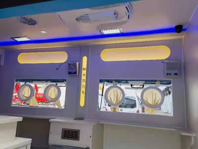 新全順V362核酸采樣車多功能檢測(cè)車,車內(nèi)材料有耐腐蝕鋼、鋁合金、不銹鋼等為主,分別經(jīng)過鍍鋅鈍化、導(dǎo)電氧化等工藝處理。辦公隔離屏采用透明材質(zhì),清洗比較方便。監(jiān)控系統(tǒng)海康威視,各作業(yè)區(qū)獨(dú)立錄像。全車設(shè)計(jì)有三個(gè)窗口,分別是注冊(cè)窗口、采集窗口和樣品處理窗口。搭載了生物樣本存儲(chǔ)箱、駐車空調(diào)、車內(nèi)新風(fēng)凈化系統(tǒng)等各類先進(jìn)功能儀器,設(shè)計(jì)非常人性化。圓形照明燈、車外照明燈、室內(nèi)照明燈,LED 形式。