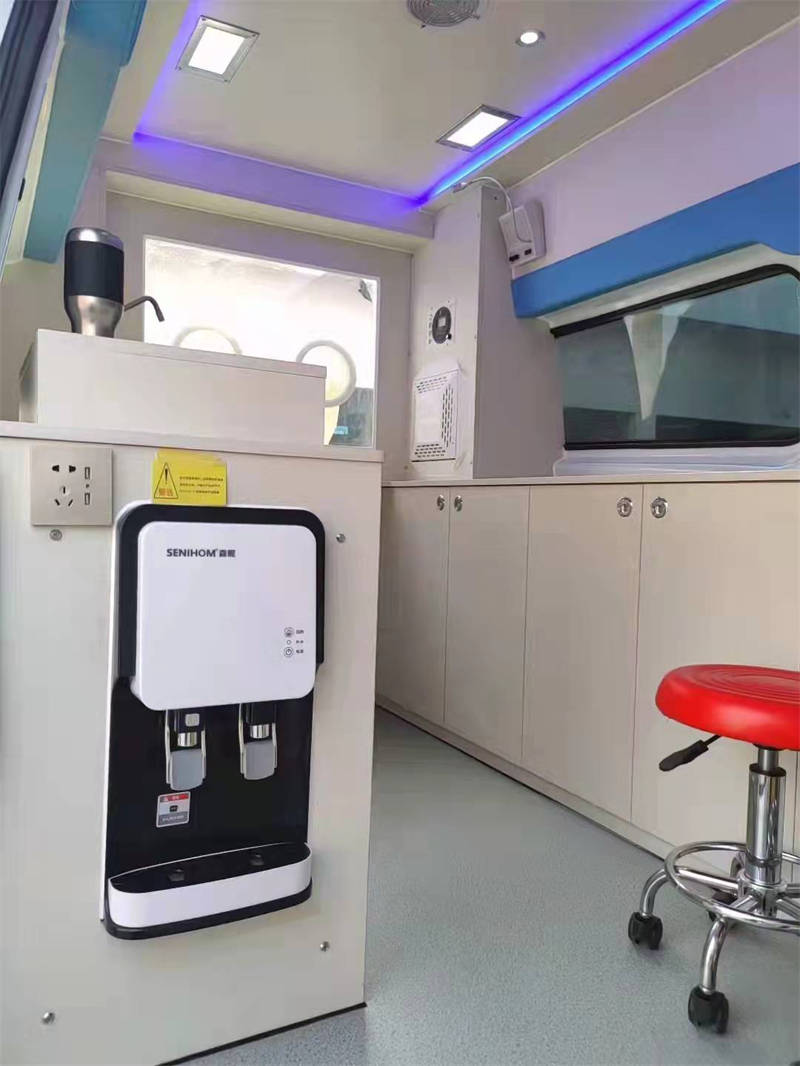 新全順V362核酸采樣車多功能檢測(cè)車,可智能采取打印任意通道檢測(cè)信息。可實(shí)現(xiàn)全流程的無接觸采樣,車內(nèi)配置微正壓環(huán)境,有效防止?jié)撛诘牟《厩秩氩杉ぷ髋撌摇榱瞬挥绊戃圀w的密封性,車頂設(shè)備盡量應(yīng)用與車頂工作平臺(tái)相連而不與車頂直接相連。安卓7英寸大屏,支持4G和wifi網(wǎng)絡(luò)連接,性能優(yōu)良。為給醫(yī)務(wù)人員給予舒適的工作環(huán)境,還搭載駐車空調(diào)內(nèi)循環(huán)系統(tǒng),可調(diào)節(jié)艙室內(nèi)溫度。配備獨(dú)立式冷暖空調(diào),保證檢測(cè)艙內(nèi)溫度適宜。可移動(dòng)檢測(cè),隨叫隨到。