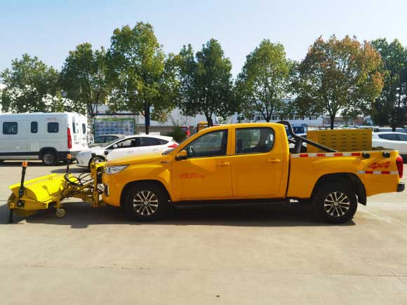 馭途雙排座皮卡除雪車,撒布寬度4-15米。掃雪滾刷駕駛室內可操作性,易于快捷。除雪刷片使用除雪鏟、掃雪滾刷可互換的快速連接機構,掃雪滾刷與車輛的安裝及拆卸易于利于,作業安全靠譜。除雪板上部為整體式。除雪滾刷刷片直徑大,質量好,更換容易,非常實用。馭途雙排座皮卡除雪車采用實芯高承載力的耐磨支撐輪,作業更靠譜。