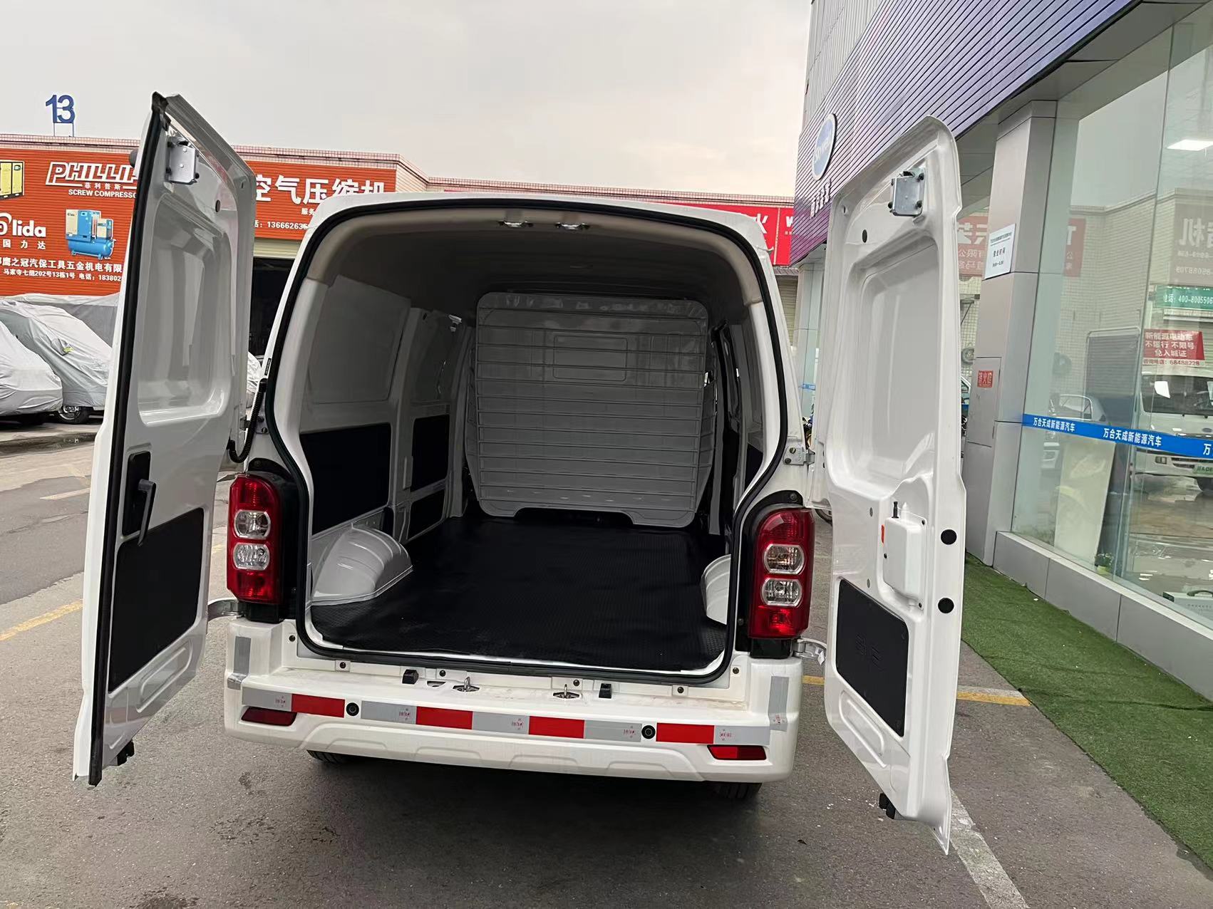 南京金龍開沃D10新能源面包車貨車上裝配置:雙高開尾門設計,使您裝卸貨物更加靈活便捷。駕駛區和載貨區隔離設計,全封閉式車廂結構,保障您貨物的安全完整。有效載貨空間高達12.3立方米。