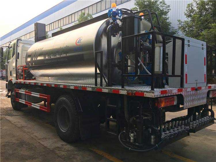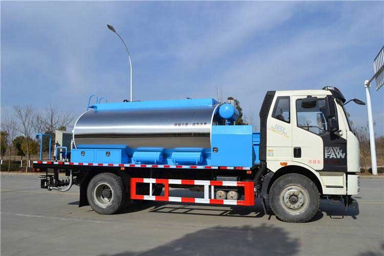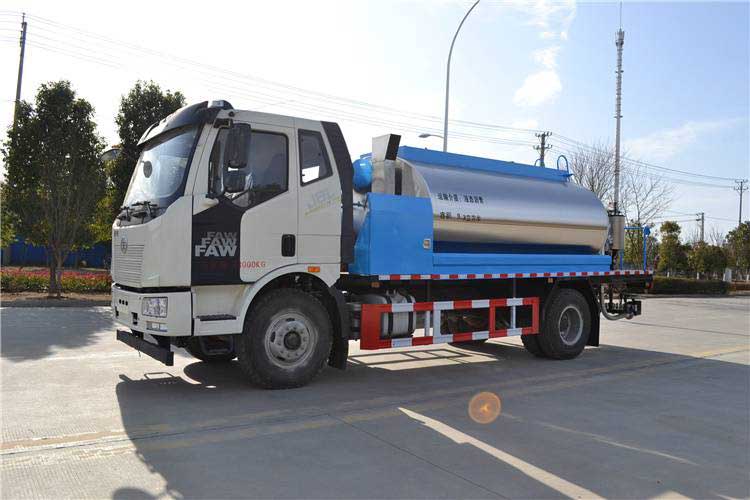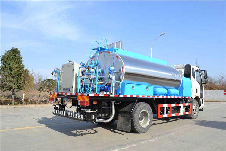 解放J6_12方智能型瀝青灑布車,全車效率高,工作車速:1.5--20km/h。配備優質汽油發電機。汽車外包裝采用不銹鋼板,耐用精美。意大利進口柴油燃燒器加熱,質量更好。整車瀝青灑布量:0.2~3.5L/m2。