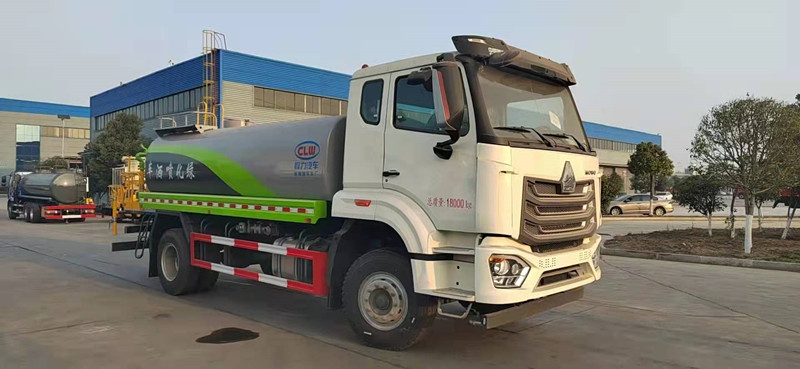 重汽豪沃NX寬體寬臥4700軸距環衛灑水車是一款采用國六排放標準重汽豪沃原裝底盤改裝的環衛灑水車,該車配置豪華,駕乘舒適,該車罐體容積:15 立方米,標配前沖、后灑、側噴、后平臺高炮,是園林綠化、小區物業、公路養護的常用車型。