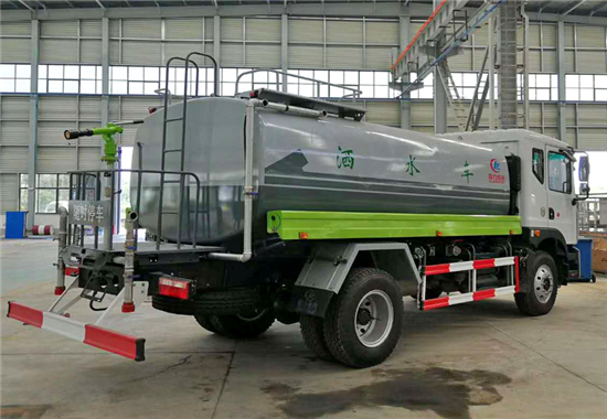 灑水車專用部分由罐體、水泵、取力器、傳動軸、球閥、噴灑裝置等部件組成。罐體采用4mm厚武鋼專用板材制作,罐體容積15噸,該灑水車標配前沖(噴)后灑,灑水寬度≥14米,帶側噴,罐體后帶工作平臺,平臺上安裝綠化灑水炮,消防樣式灑水炮可全方位旋轉,射程≥28米,可連續調成直沖狀、大雨、小雨、毛毛雨,帶安全護欄,配備專用灑水泵,泵可自吸自排,安裝過濾網,帶消防接口,可通過消防栓進水,帶自流閥,具有自吸自排功能,垂直吸≥7米。