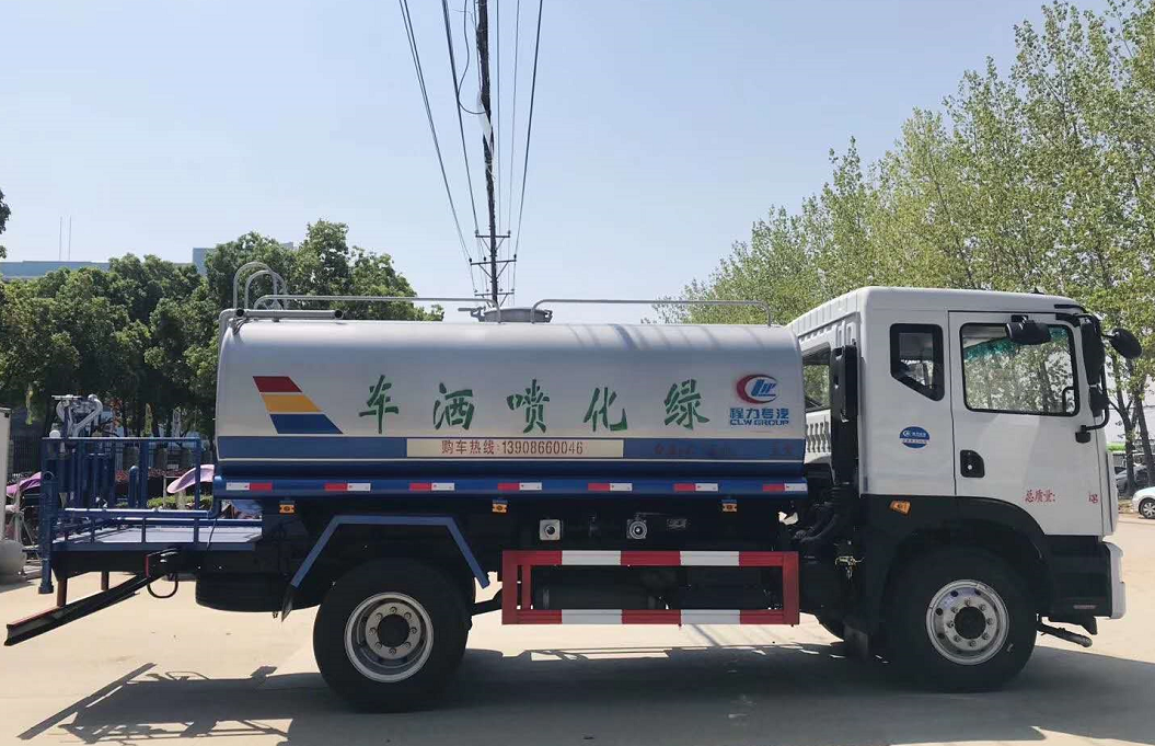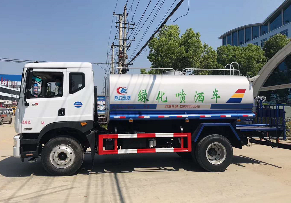 這款程力公司出產(chǎn)的東風(fēng)D9大多利卡多功能綠化灑水車,灑水車采用了東風(fēng)股份公司的正宗原裝底盤,東風(fēng)康明斯180馬力發(fā)動(dòng)機(jī),六缸機(jī),國(guó)五排放;帶空調(diào)和方向助力,車頭前配置前沖,后灑,側(cè)噴,高位花灑,后平臺(tái)帶綠化灑水車炮,罐體采用4mm武鋼優(yōu)質(zhì)碳鋼制作,裝水12噸;罐體后帶工作平臺(tái),平臺(tái)上安裝綠化灑水高炮,炮可噴灑農(nóng)藥,并有多種雨?duì)羁烧{(diào)節(jié)(大雨中雨毛毛雨霧狀),泵可自吸自排,帶自流閥,帶消防接頭,帶過(guò)濾裝置。
