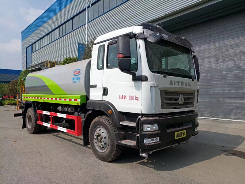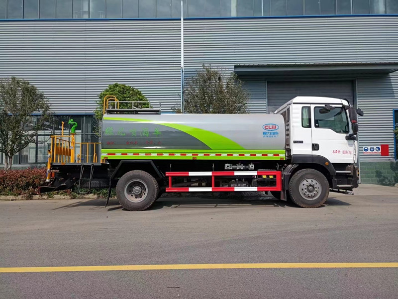 重汽汕德卡灑水車,G5M駕駛室,容積:12立方,濰柴220馬力發動機,軸距4500mm,重汽八檔變速箱,4.5T前橋,9T后橋,250大梁,10.00R20鋼絲胎,方向助力,斷氣剎,自動空調,氣囊座椅,電動玻璃,中控鎖,遙控鑰匙,多功能方向盤,電動調節帶加熱后視鏡;其他標配。罐體容積:12立方,整車螺栓鉚接,大口徑直通球閥,鋁合金三通,罐體材質采用4mm碳鋼Q235材質一次成型,大功率專用灑水泵,高轉速取力器,整車前沖、后灑、側噴、高位花灑,后平臺帶綠化灑水高炮,可調節直沖狀,大雨、小雨、毛毛雨、霧狀;后平臺可選裝30米、40米、50米全自動柴油霧炮機,可有效清除霧霾,降塵,環境空氣等。