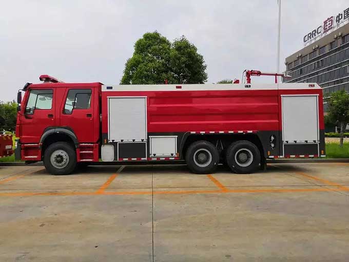 國六[推薦車型]16噸泡沫消防車_重汽豪沃后雙橋泡沫消防車參數,是撲救石油、化工、廠礦企業、港口貨場等火災的必要裝備。由于泡沫消防車所具備的特殊性能,石油化工等危險性不小的火災現場主要采用的是泡沫消防車。泵房在車身尾部。根據消防部隊滅火和搶險救援的需要,消防車設計制造成適宜消防隊員乘用、裝備各類消防器材或滅火劑的專用全車。