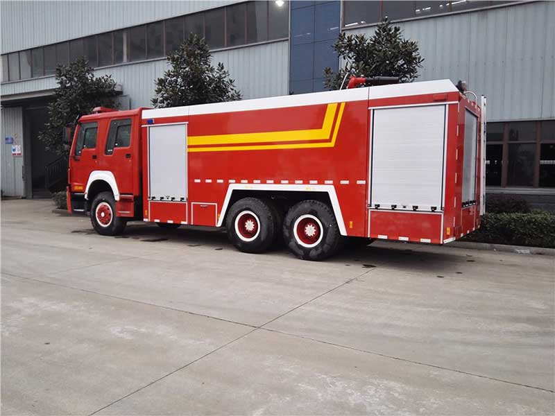 16方水罐消防車_重汽豪沃后雙橋水罐消防車,罐體及金屬附件進行了噴涂防腐底漆和面漆,增加了附著力和耐腐性。消防員能夠借助爬梯登上箱體操作消防水炮,精確對準著火點進行滅火。罐體優質碳鋼材料(Q235A),焊接式結構,內設縱,橫防蕩板,經環氧防腐處理。選擇配備擇304不銹鋼及PP材料。車輛運用橋車油漆處理技術,全身涂滿消防車通用的消防紅,工藝精湛,增強油漆附著力、均勻性,耐用性。消防系統采用電、氣動控制,操作簡捷,消防炮150m無線遙控。強大動力,節能環保,人性設計,布局合理,取用簡單。
