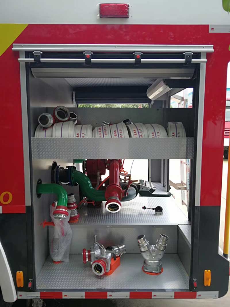 5方水罐消防車_東風(fēng)多利卡D7雙排水罐消防車功能特點(diǎn):泵房和器材箱左右兩側(cè)安裝有新款鋁合金卷簾門,開啟便于,強(qiáng)度高。爬梯能夠輔助消防員上到箱體頂部操作消防水炮,對準(zhǔn)火災(zāi)點(diǎn)進(jìn)行消防滅火。車輛運(yùn)用橋車油漆處理技術(shù),全身涂滿消防車通用的消防紅,工藝精湛,增強(qiáng)油漆附著力、均勻性,耐用性。具有動力強(qiáng)勁、環(huán)保節(jié)能、扎實(shí)耐用、機(jī)動性強(qiáng)、射程遠(yuǎn)等突出優(yōu)勢和特點(diǎn)。消防管路全部采用大口徑鋁合金材質(zhì),管路壓力損失小。器材支架采取歐洲技術(shù)生產(chǎn)的鋁合金型材,內(nèi)藏式塔接制造,全內(nèi)六角連接結(jié)構(gòu),好看耐用。