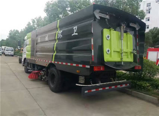 8)采用先掃,后沖刷,再吸收的工作方式,能將垃圾及污水一次清掃、沖刷、吸收干凈。路面作業后無塵土,無積水