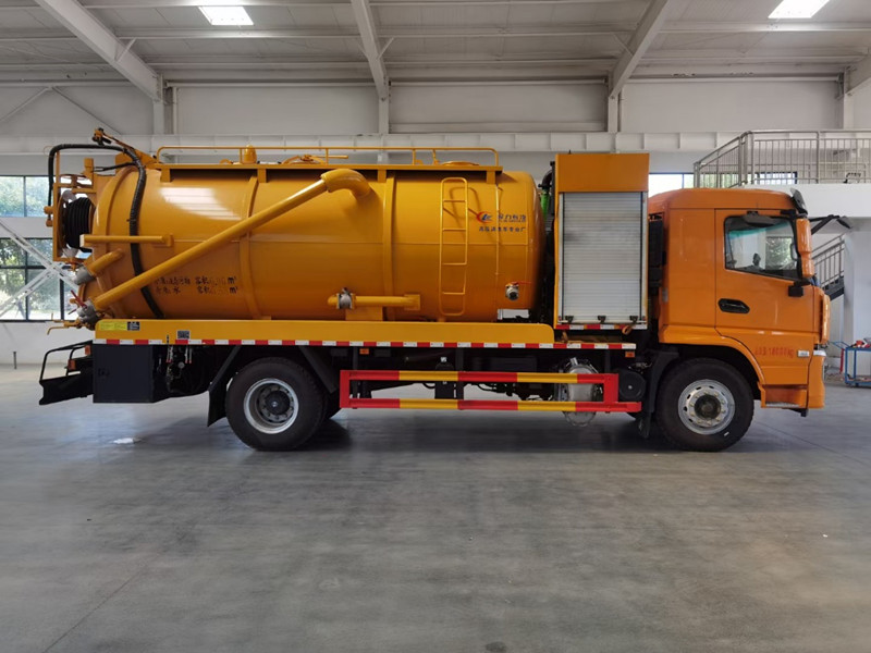 罐體采用采用國標8mm厚碳鋼板,配強力吸污泵,進口高壓泵。清洗吸污車既可以疏通、清洗下水道,又可以抽吸污水池與化糞池,一車兩用,工作效率高,是清理市政管網,河道清淤的好幫手。該車容積大馬力強,總容積達到15方,罐體容積可按需分配,配置一臺發動機專門為吸污泵提供動力,吸力強勁,外觀豪華大氣,彰顯實力。