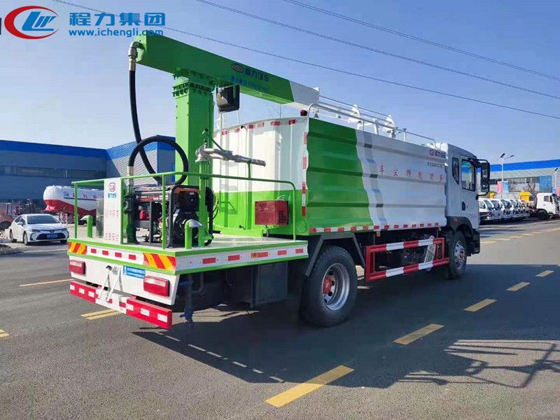 上裝配置:罐體容積:15立方,罐體內部做防腐,帶加熱功能,前沖、后灑、側噴、高炮,抑塵噴灑桿(帶旋轉伸縮功能),噴灑桿離地3-4米 。后部平臺帶8KW副發(fā)電機組,罐體內部加兩個1.5KW電動馬達(帶攪拌功能),平臺和噴灑桿藍色。遙控操作噴灑桿上下左右旋轉,國內知名品牌回轉支撐,大品牌油缸。